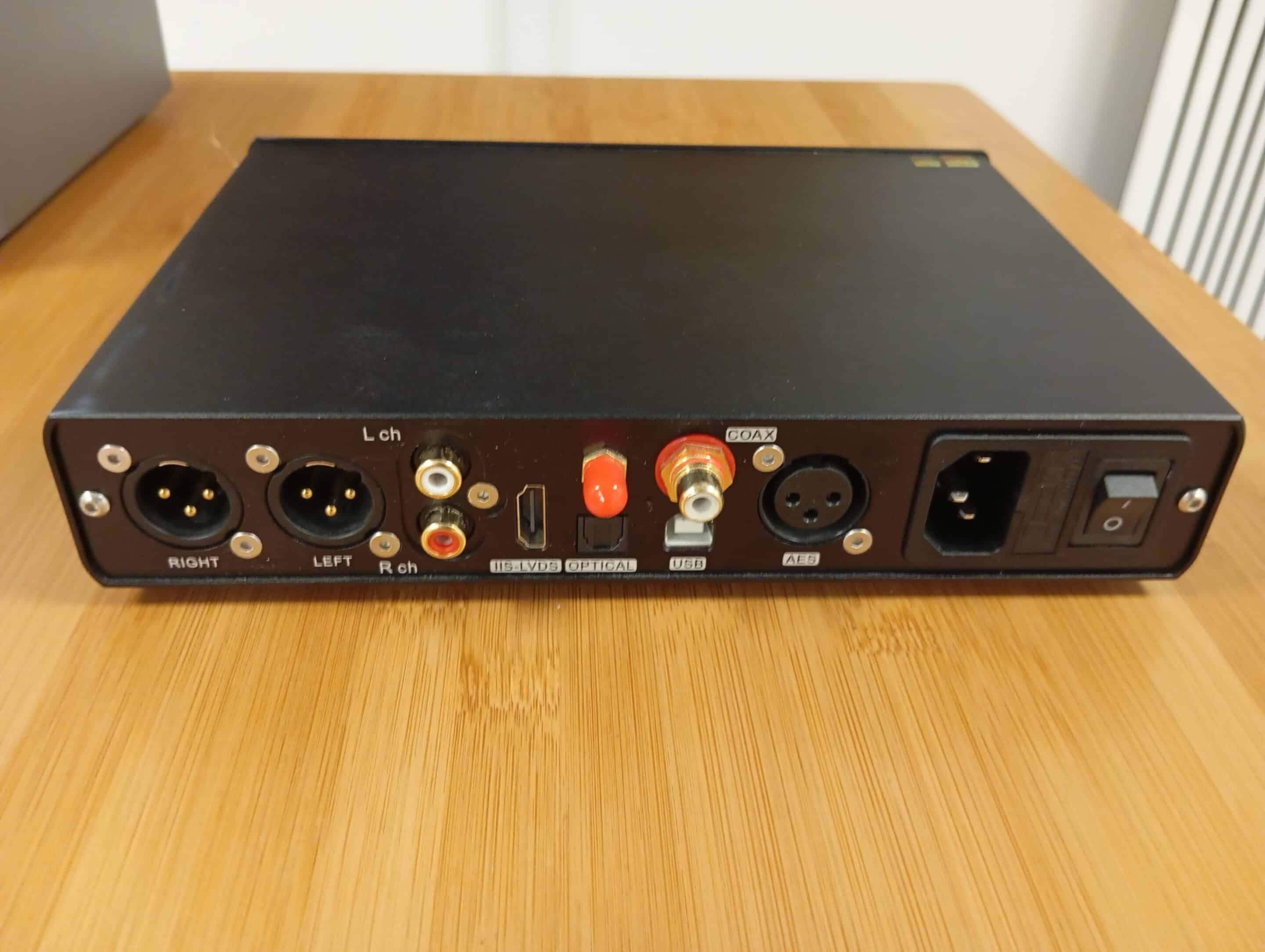 Med USB, coaxial, optisk, XLR och I2S digitalingång.