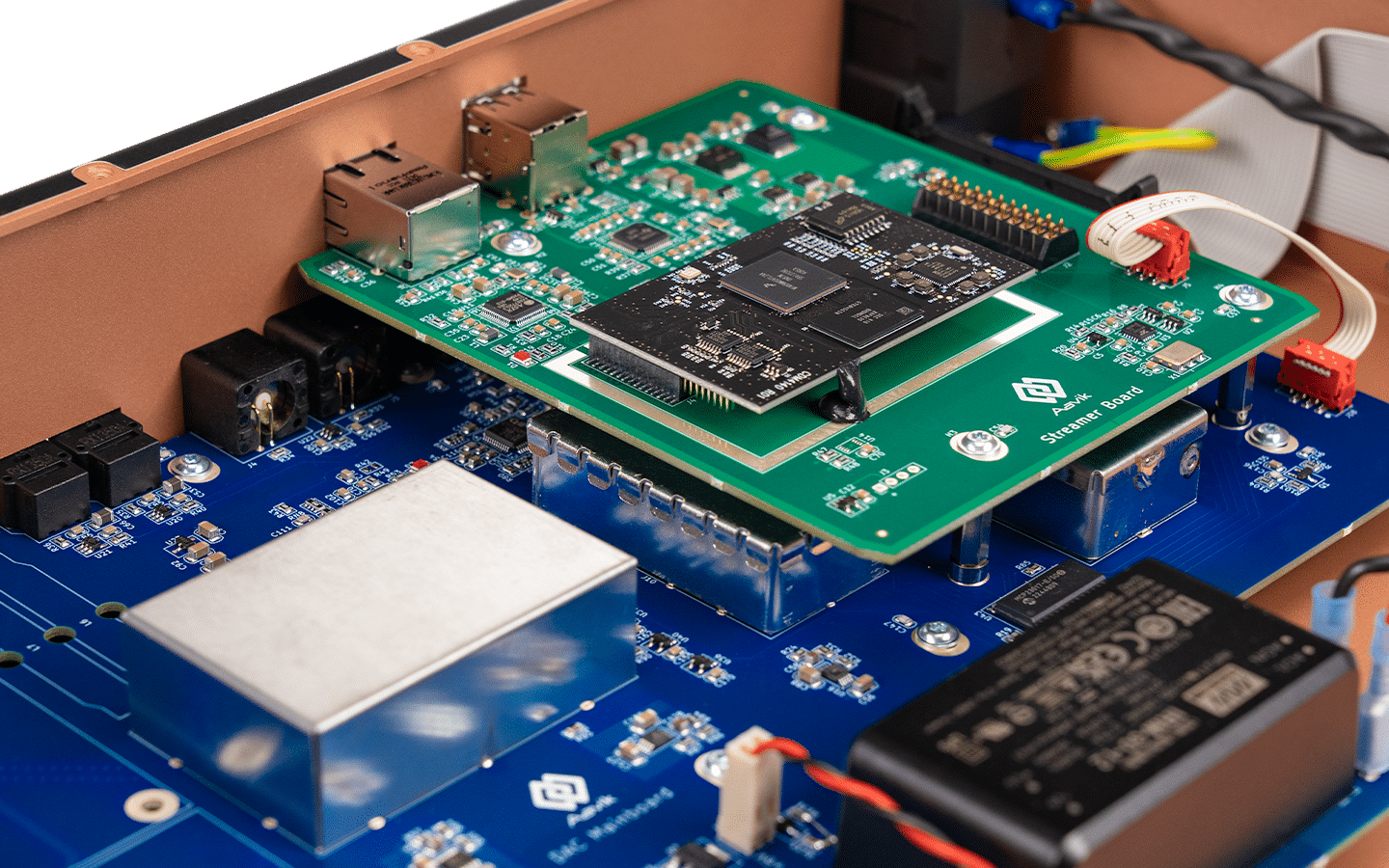 Erbjuder ultralågt jitter och exakt klockning för exakt signalbehandling. Skåpet är konstruerat för att minimera mekaniska vibrationer och elektromagnetiska störningar, vilket stöder optimal prestanda med högupplösta ljudformat.
