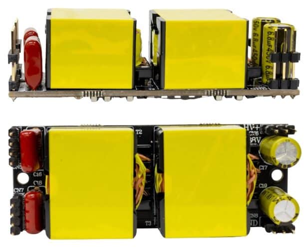 - I hjärtat av IDA-9:s strömförsörjningsarkitektur finns en sofistikerad tvåfas interfolierad GaN Power Factor Correction (PFC) krets. Denna innovativa designmetod ger exceptionell spänningsreglering samtidigt som minimala brusnivåer bibehålls och ultrahög effektivitet uppnås. Hela PFC-modulen är inrymd i ett anmärkningsvärt kompakt 75 × 30 × 25 mm hölje, men levererar ändå imponerande 600 watt uteffekt.