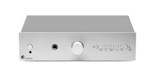Pre Box S3 erbjuder alla moderna anslutningsmöjligheter för att fungera som din centrala Hi-Fi-stereohub. Du kan också ansluta digitala källor som din TV via eARC eller en CD-överföring via koaxial- eller optiska S/PDIF-ingångar och använda den interna DAC:n med en kvalitet upp till 24 bitar och 192 kHz.