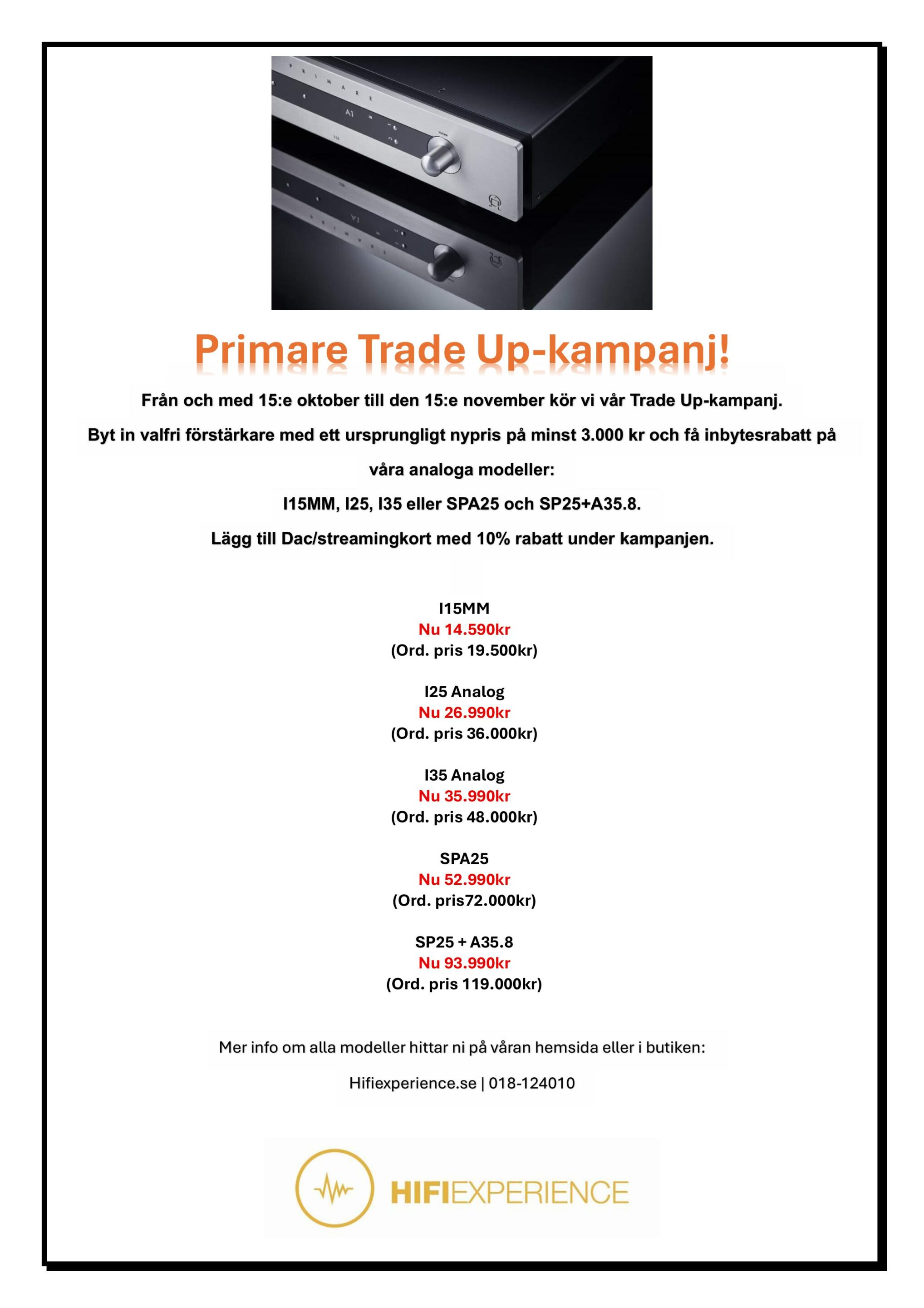 SPA25 Prisma är en bioförstärkare från Svenska Primare som är baserad på den prisbelönta A35.8 slutsteget.
