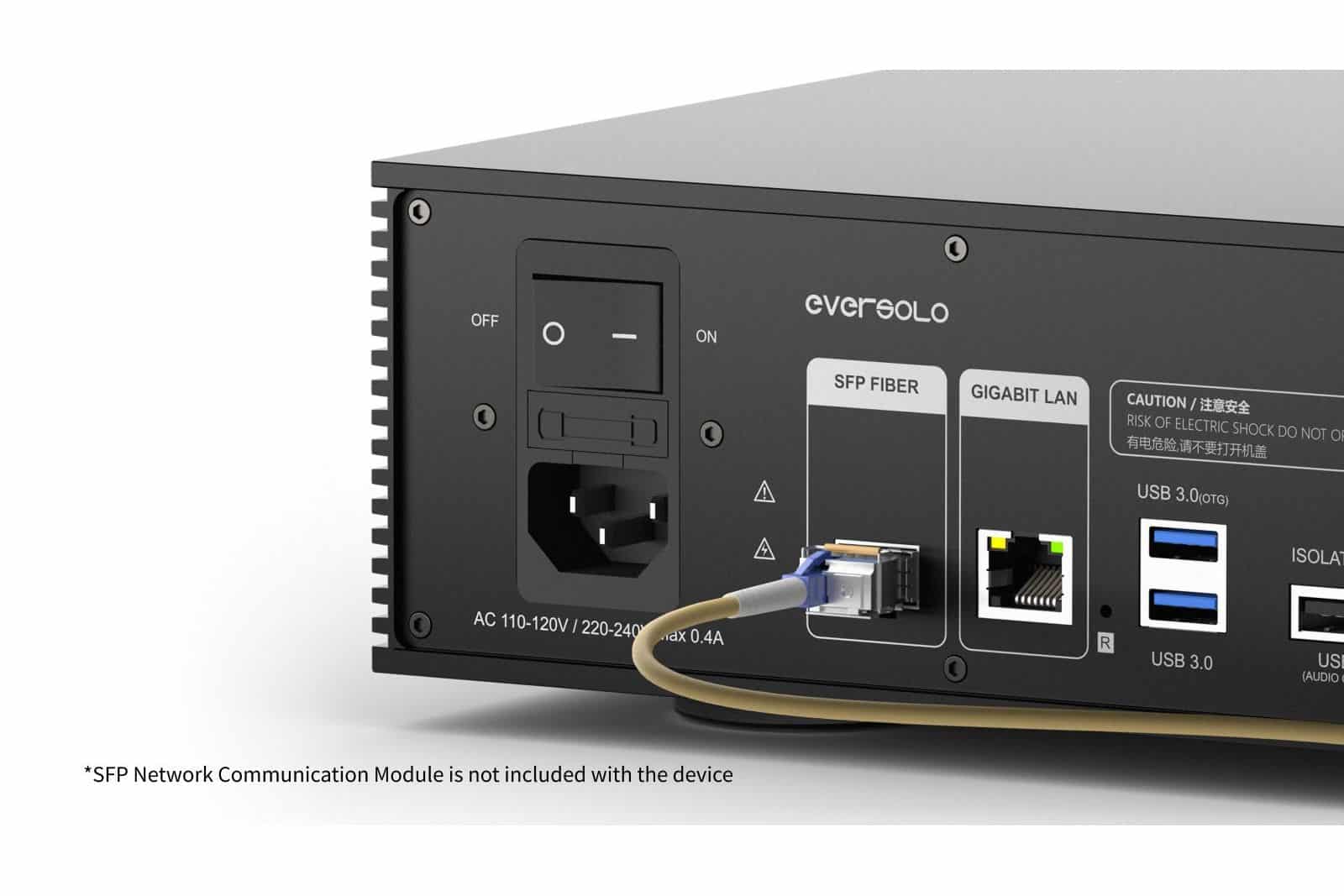 T8 är utrustad med både SFP-nätverksmodul och RJ45 Gigabit-port för snabb och pålitlig ljudöverföring. Den inbyggda elektriska isoleringen i SFP-modulen skyddar effektivt mot elektromagnetiska störningar och säkerställer att Hi-Fi-systemets krav på ren signal uppfylls.