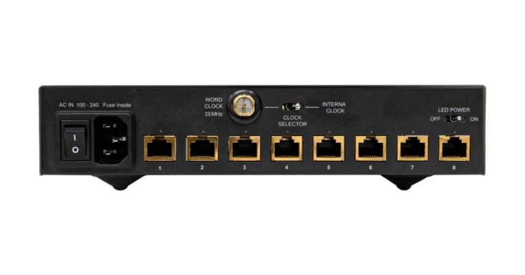 - Gränssnitt: 8 x Audio Grade 100 / 1000 Base-T