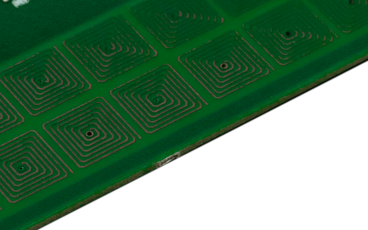 Aktiva fyrkantiga Teslaspolar tillämpar samma grundläggande princip som traditionella Teslaspolar men använder fyrkantiga, inåtspiralformade spolar som etsas direkt på kretskort, med motspolar placerade på undersidan.