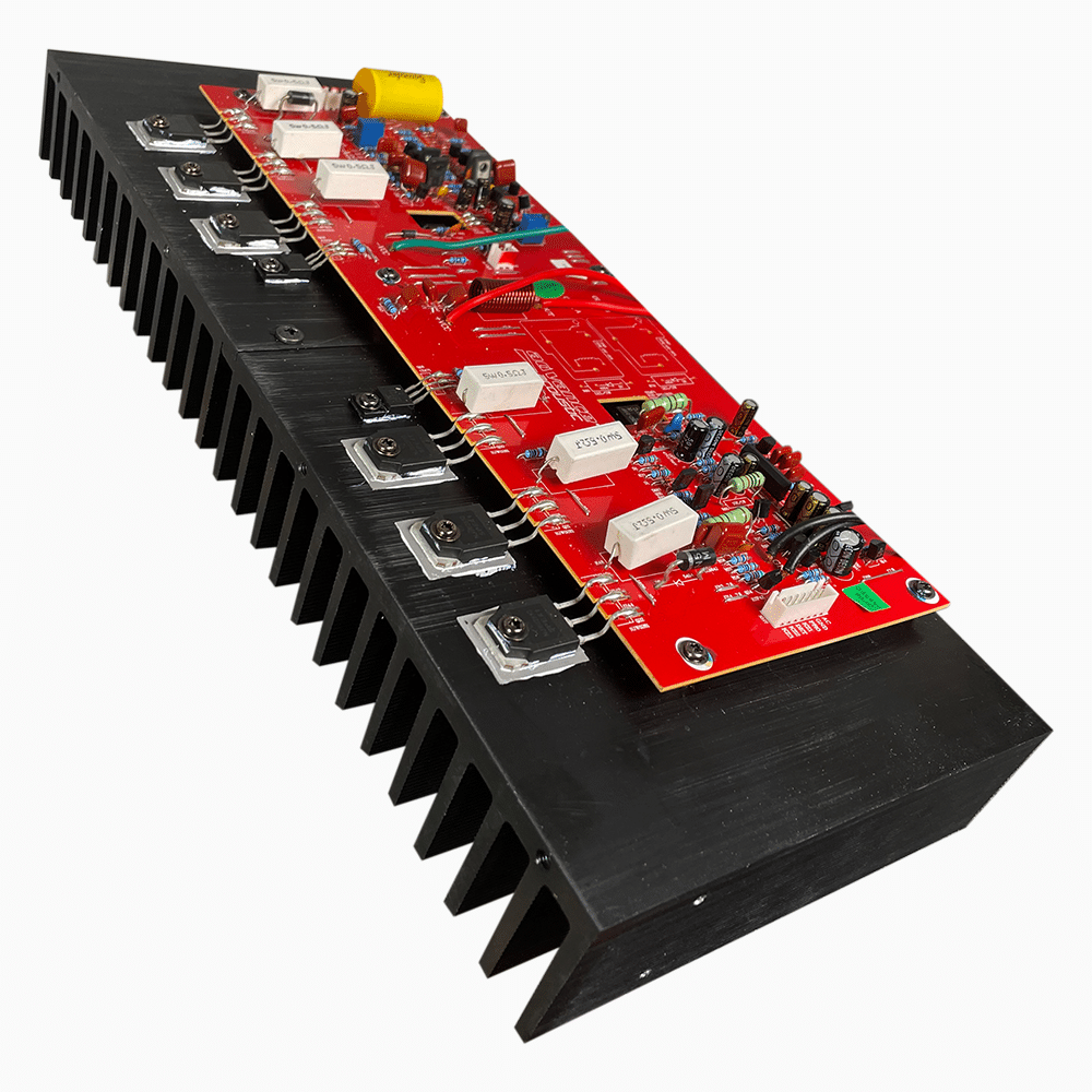 X-A220EVO har sin tjocklek tack vare höjden på den generöst stora effekttransistorkylflänsen.