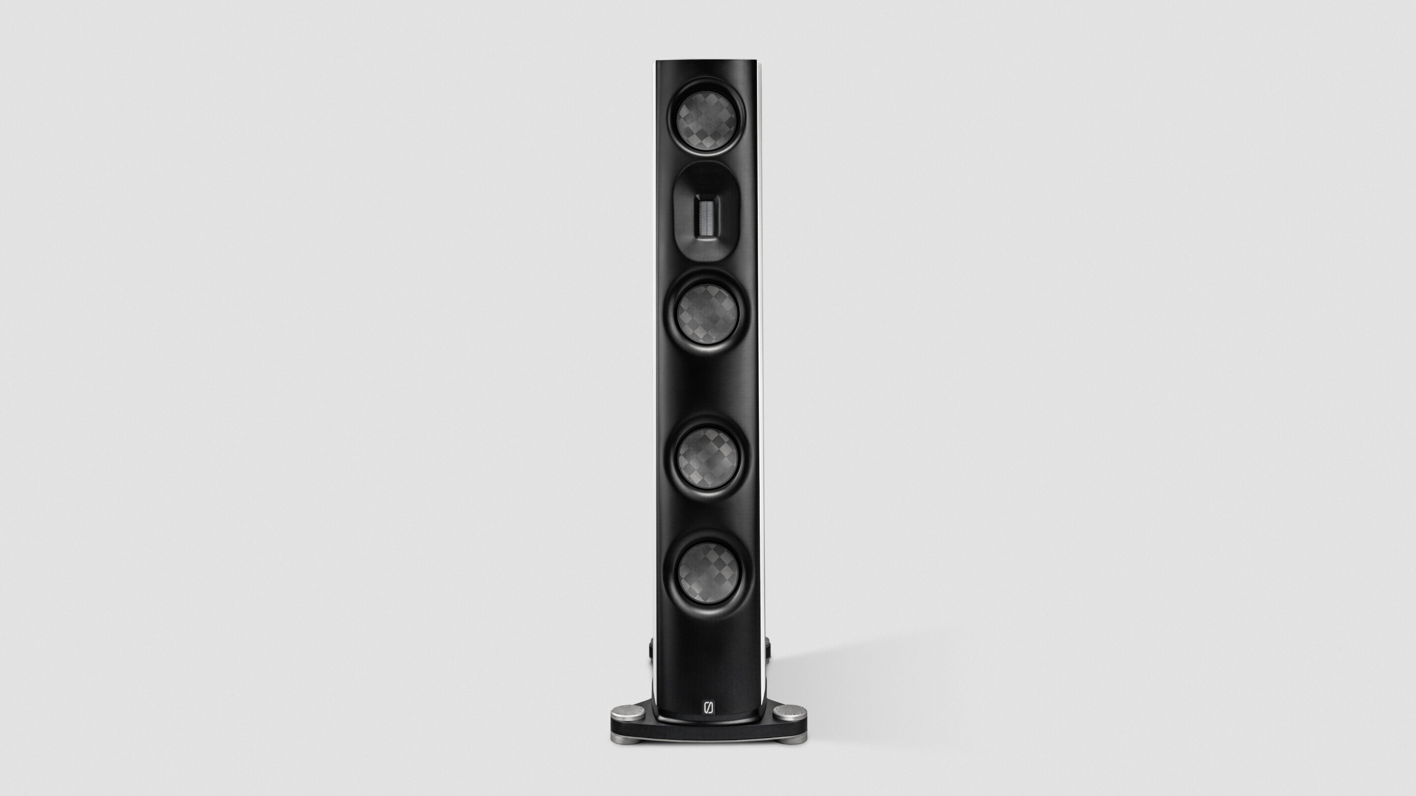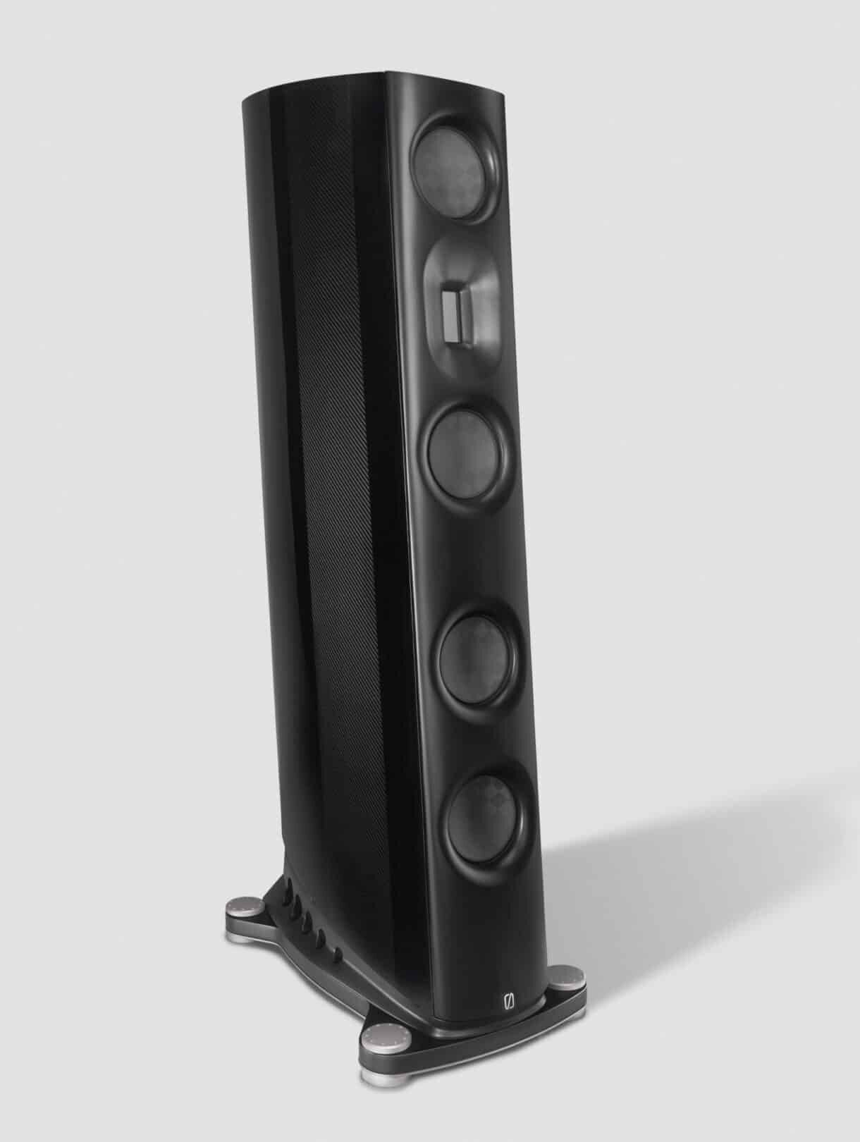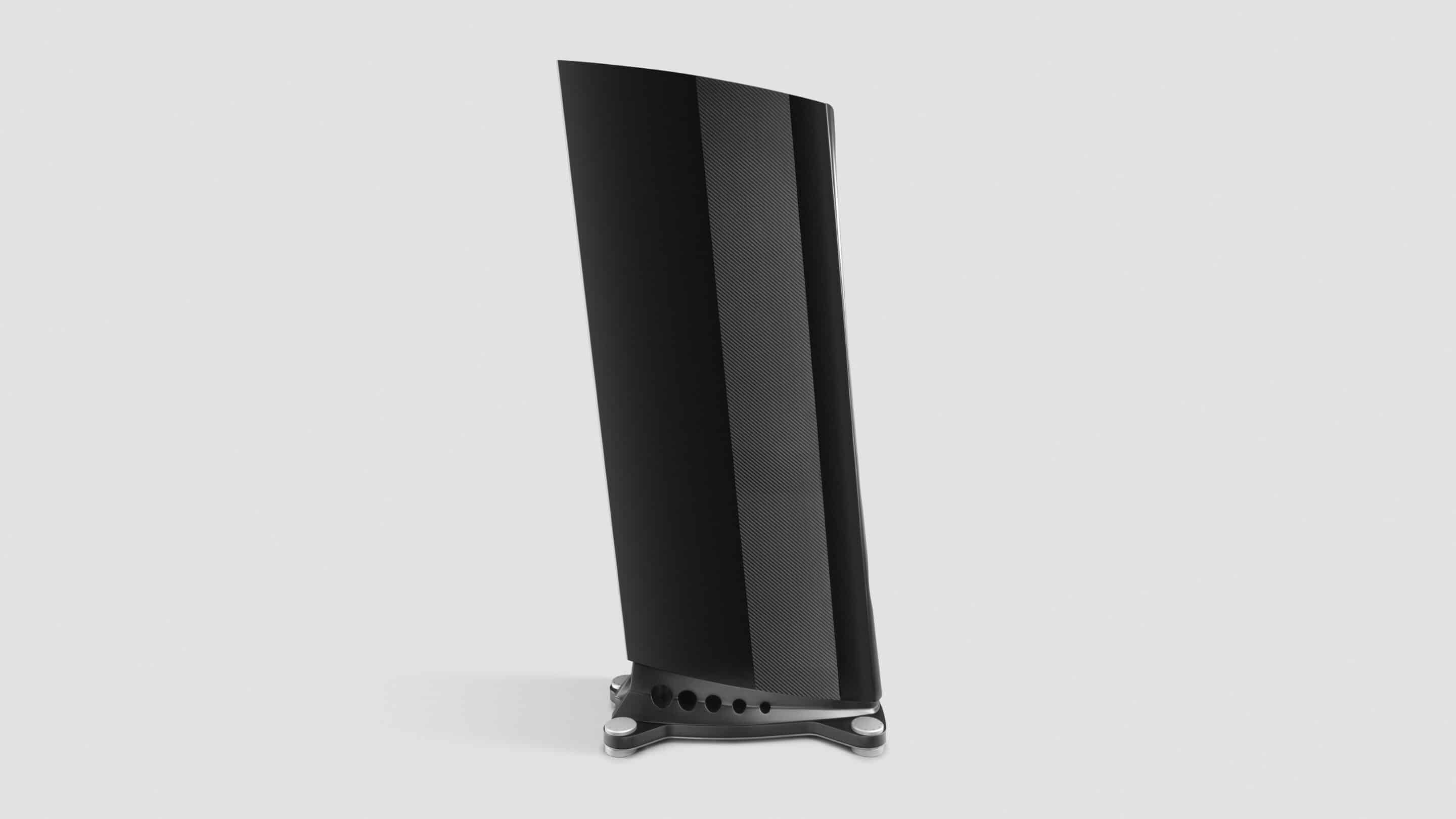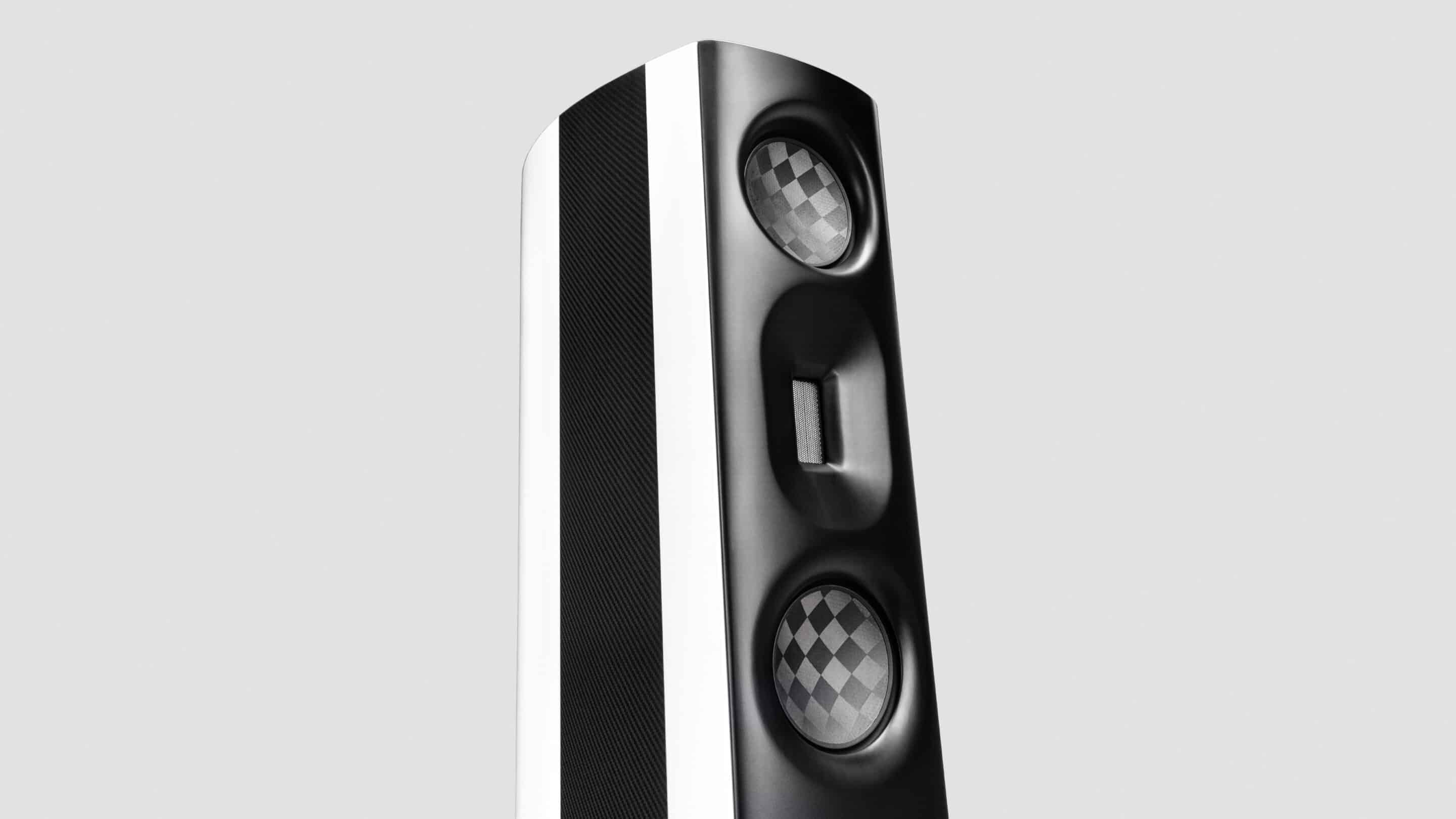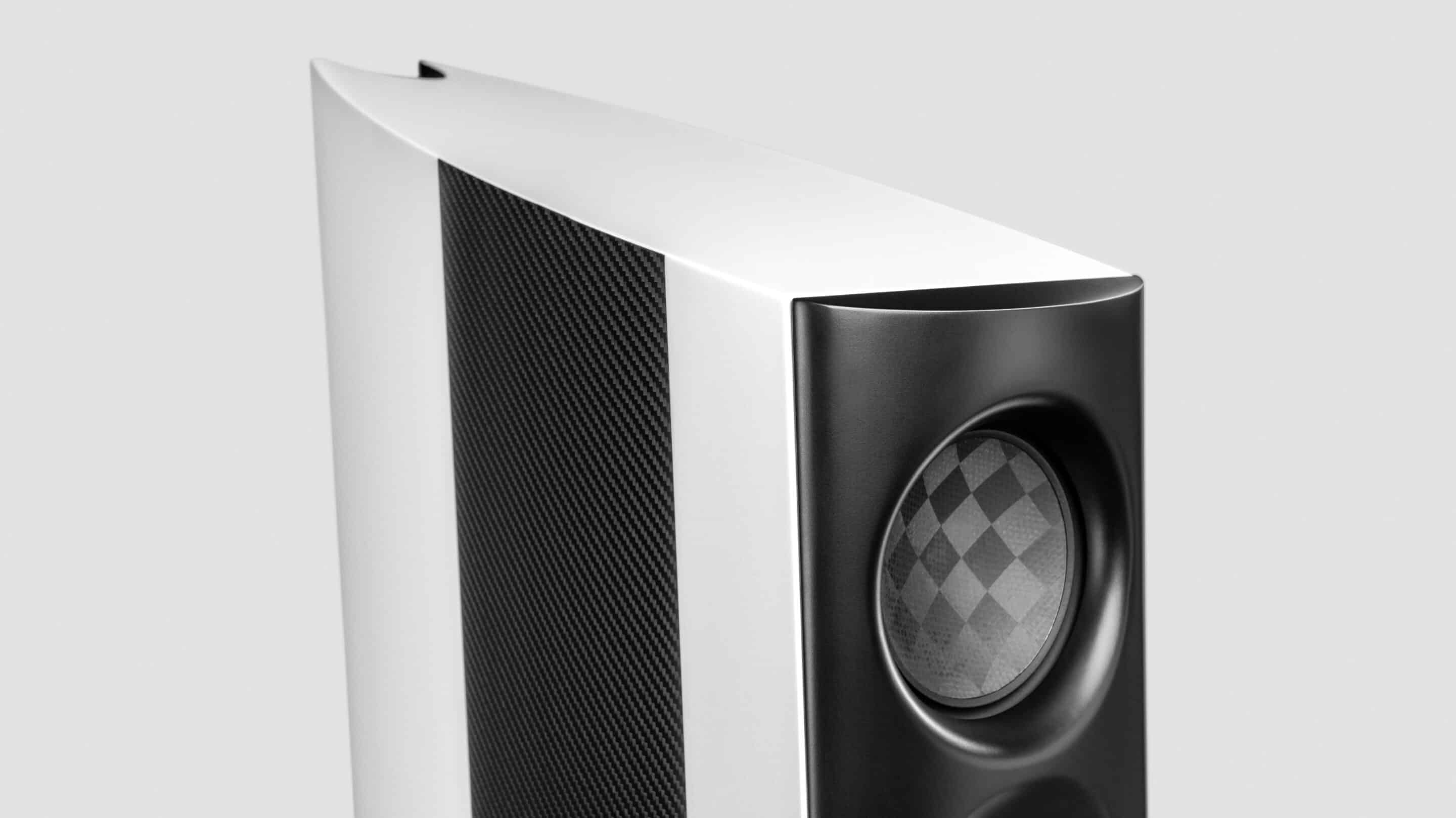 Detta material, i kombination med 1 mm tjocka kolfiberpaneler som appliceras på sidorna, ökar avsevärt styvheten i höljet. Glänsande vita/svarta sidränder som läggs ovanpå de tjocka kolskikten gör att detta material fungerar på sitt allra bästa och bidrar i hög grad till högtalarens unika estetik.