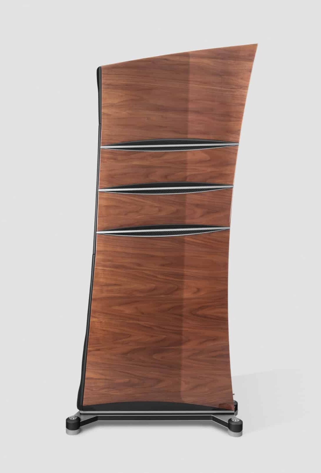 Det bakre ventilationssystemet gör att elementen kan avlasta effektivt, vilket minskar tryckuppbyggnad och distorsion. Denna noggranna kabinettdesign säkerställer ett öppet, rymligt och mycket dynamiskt ljud samtidigt som det bibehåller en elegant, modern estetik med minimala utrymmeskrav.