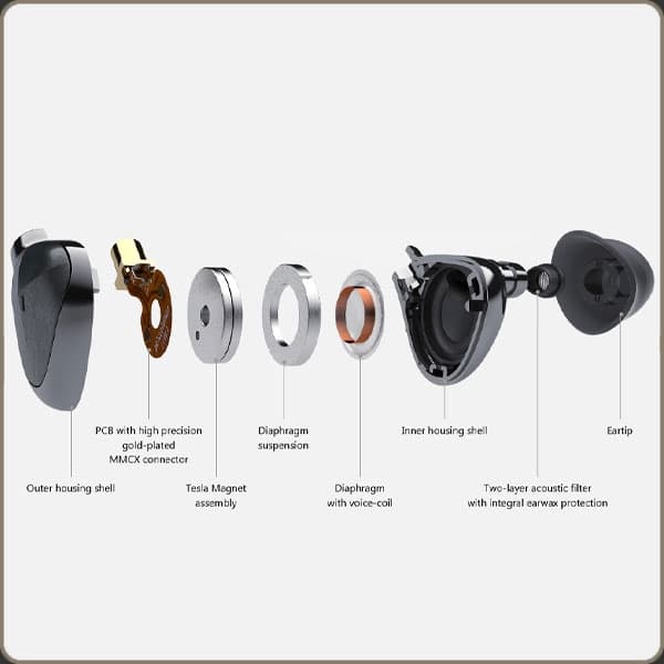 Vårt mål är att göra ljudet mer naturligt, särskilt när man spelar upp högupplöst ljud med Astell&Kern-spelare. Den nydesignade akustiska ventilationsöppningen möjliggör förbättrad basåtergivning och förbättrad diskantmjukhet tack vare ett specialkonstruerat tvålagers akustiskt filter med integrerat öronvaxskydd.