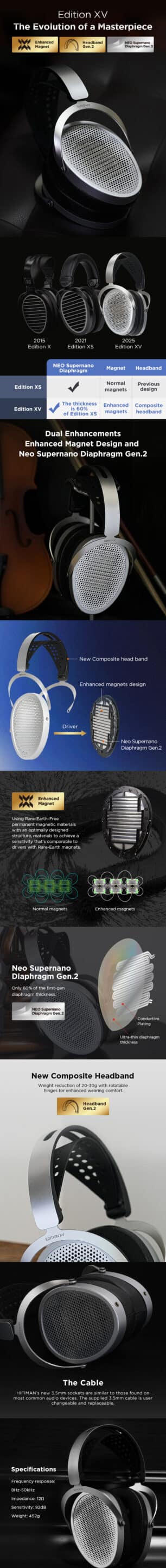 Edition XV använder ett Neo Supernano Gen.2-diaphragma och permanenta magneter.