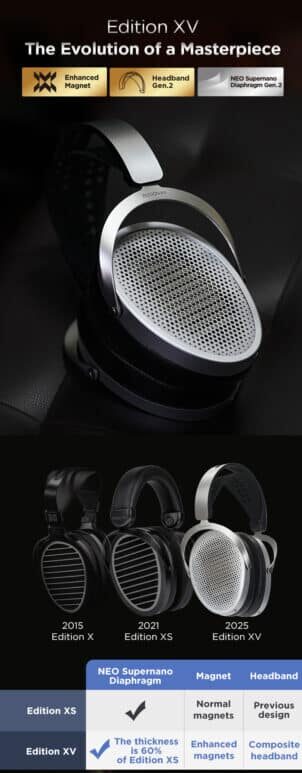 Edition XV:s bygger på andra generationens Neo Supernano-diaphragma, vars tjocklek har reducerats med 60 % jämfört med föregående generation som användes i Edition XS.