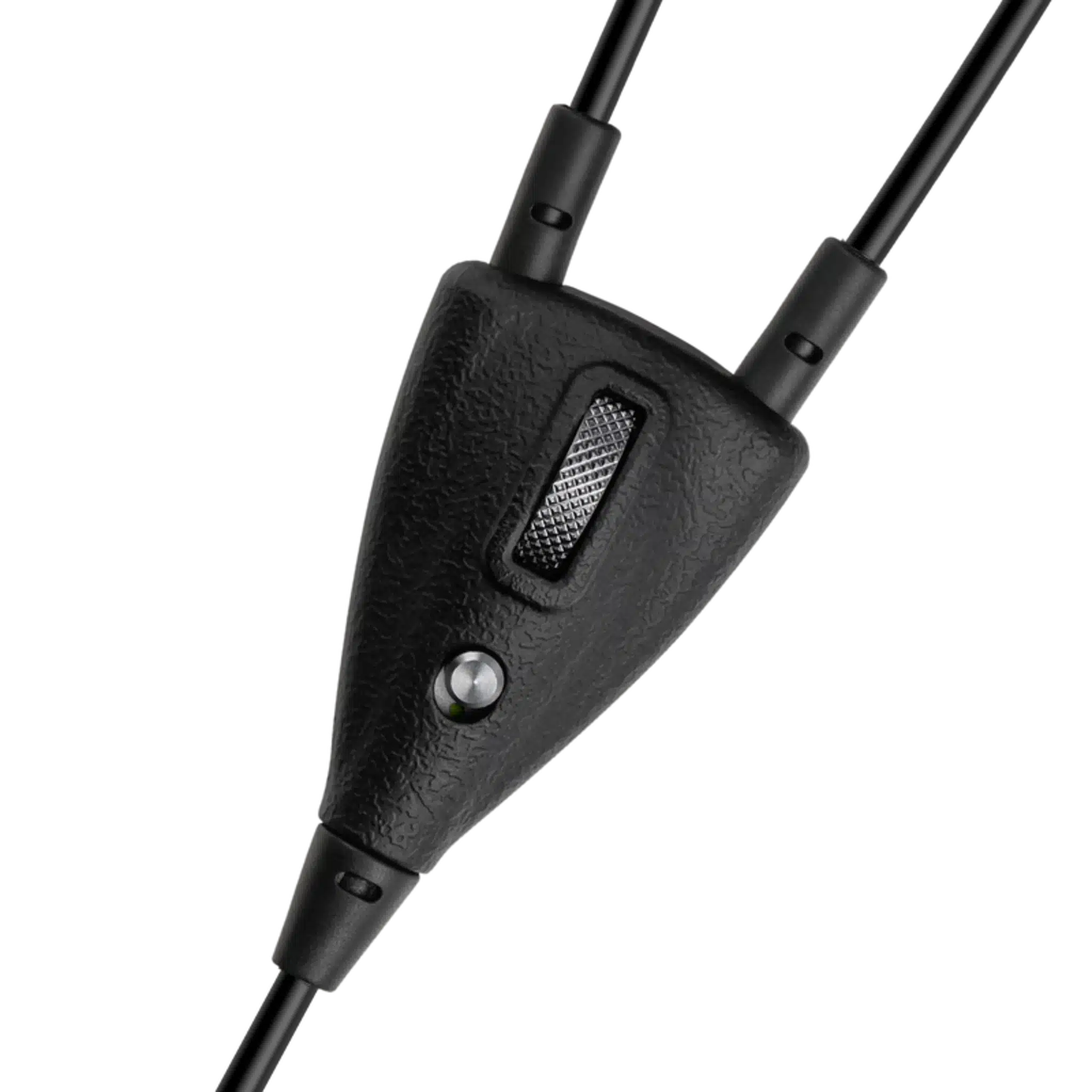 Kontrollklämman har in-line mute och roterande volymkontroller för enkel åtkomst till justeringar.