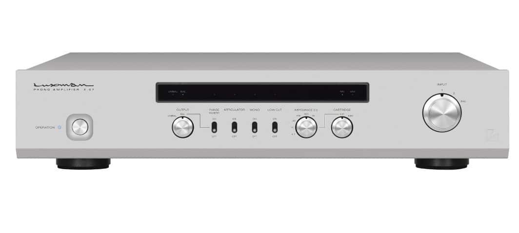 E-07 har en artikulatorfunktion som motverkar magnetisering av pickupen och MC-transformatorn med hjälp av signalströmmen från skivan som spelas. LUXMAN har lagt till en low-cut-brytare som dämpar instabilitet i bashögtalaren genom att eliminera lågfrekventa artefakter som ofta orsakas av skeva skivor. Mono Mode-brytaren erbjuder bekväm uppspelning av monoskivor och en fasomvändningsbrytare på frontpanelen reverserar fasen på de balanserade utgångarna enligt din anslutna nästastegsutrustning.