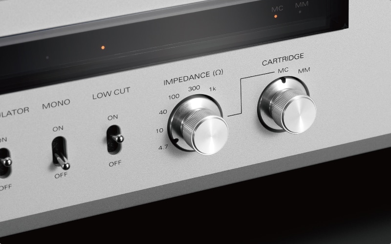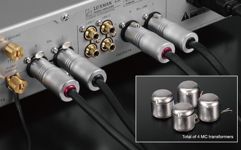 Den består av två oberoende enheter för varje kanal och låg/hög förstärkning, vilket möjliggör optimalt transformatorval baserat på den valda impedansgruppen. Dessutom stöder den balanserade ingångar som kan ta emot differentiella signaler från MC-pickuper utan förlust av utenergi, vilket förbättrar vänster-höger stereoseparation och bildlokalisering.