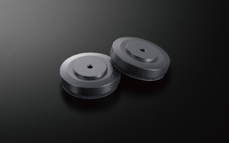 Dessutom är isolerande fötter i gjutjärn med densitetsgradient installerade för att isolera enheten från oönskade vibrationer under musikuppspelning.