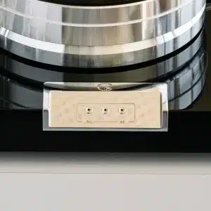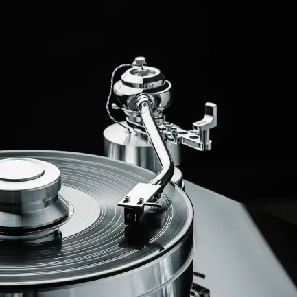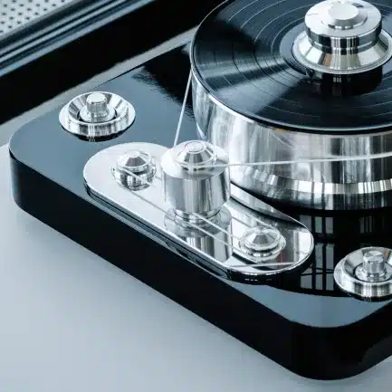 Den 10 kg tunga aluminiumplattan är TPE-dämpad och sitter på ett inverterat lager som är magnetiskt frikopplat.
