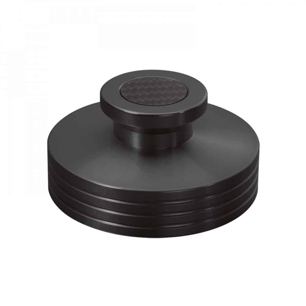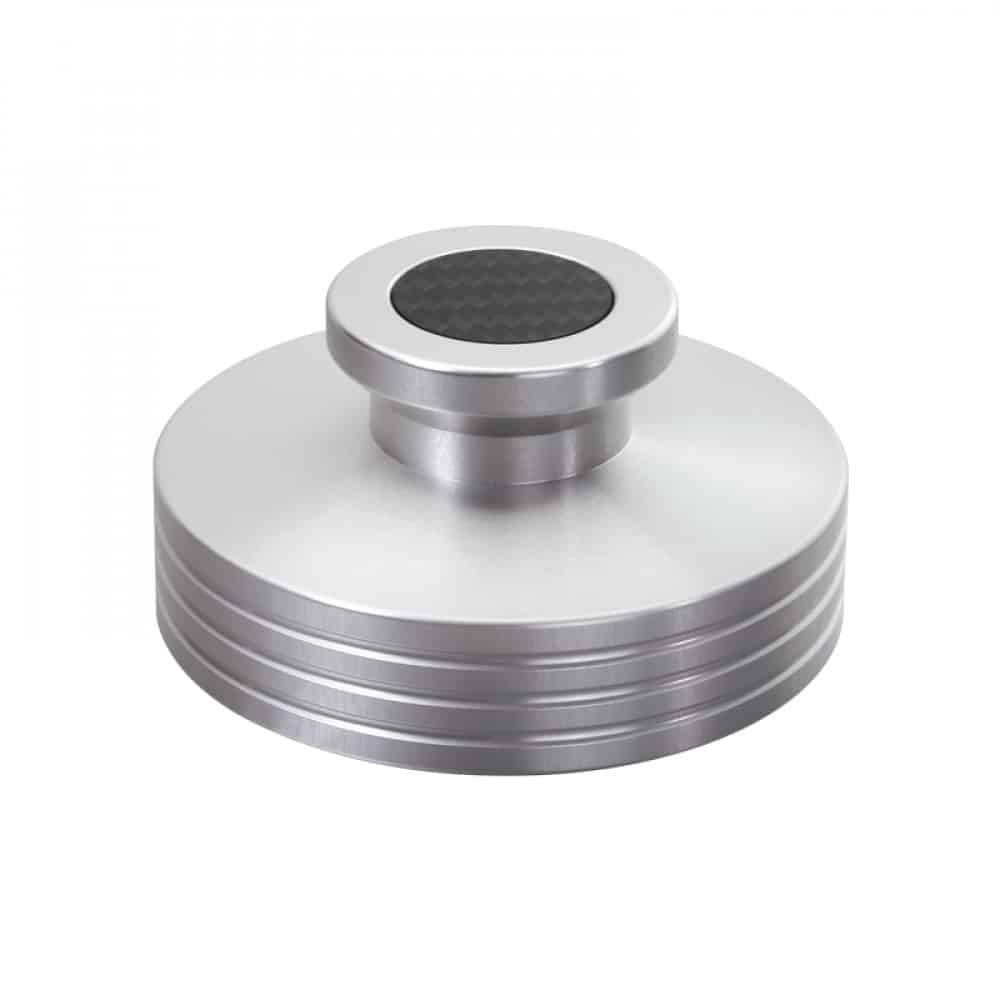 Dynavox PST330 skivpuck i aluminium fördelar vikten jämnt över skivan och ökar därmed kontaktytan för skivan på tallriken