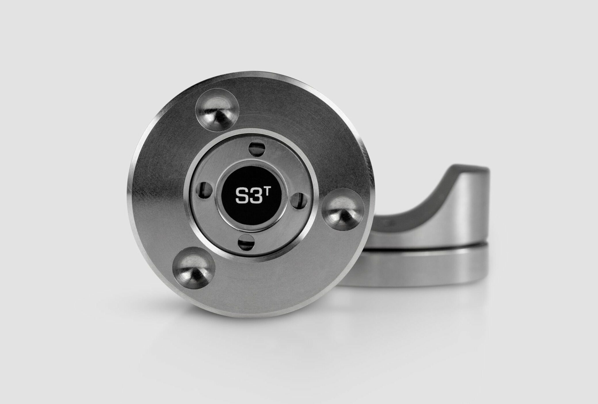 Består av två skivor och kullager som fokuserar vibrationer till små kontaktpunkter, vilket gör att oönskade resonanser kan strömma ut och omvandlas till värme – vilket säkerställer effektiv mekanisk jordning. Konstruerad med ett dubbelt syfte i åtanke; att visuellt blandas med vilken komponent de är tänkta att arbeta under, och att stödja den, så att dess verkliga potential kan låsas upp.